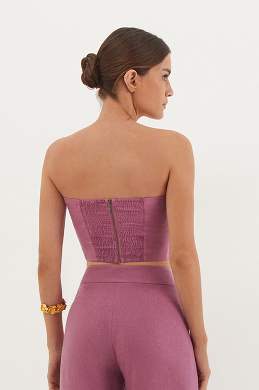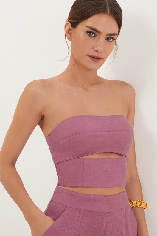 Uma silhueta clássica do repertório ViX, o top rosa Karen é uma peça para ter para sempre. Combine com calças, shorts e saias da coleção. Experimente usá-lo com sandálias, bolsas e outros acessórios ViX. - Top sem alça - Decote reto - Pequeno recorte abaixo do busto - Costas com lastex e zíper destacável Detalhes feitos à mão no ateliê ViX e Sofisticada e versátil.