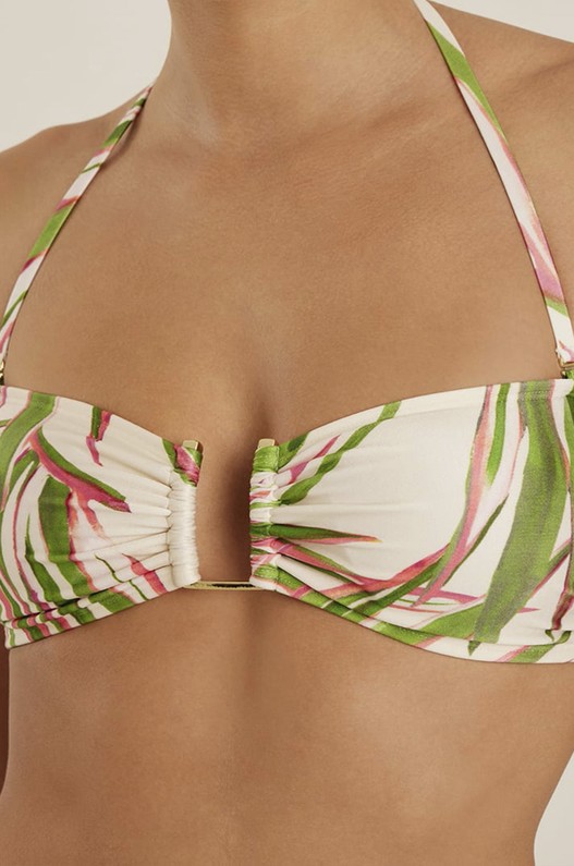 FOLIAGE: Uma estampa tropical fresca inspirada nas folhagens das palmeiras, com tons de verde e rosa gerânio em fundo Off.
