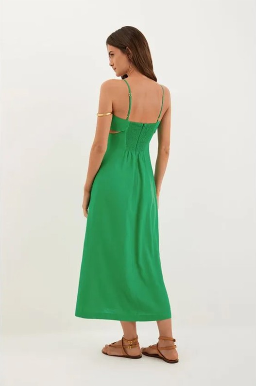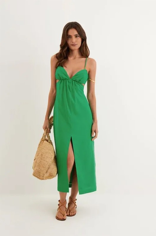 Com uma leveza descomplicada, o vestido midi verde Kylie é uma peça para ter por diversas temporadas. Leve seu look do dia para noite com flats, sandálias altas, bolsas e outros acessórios ViX.