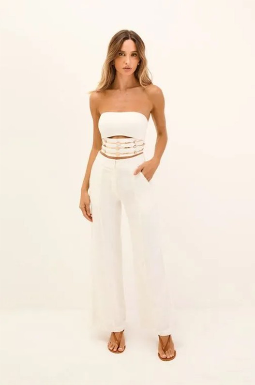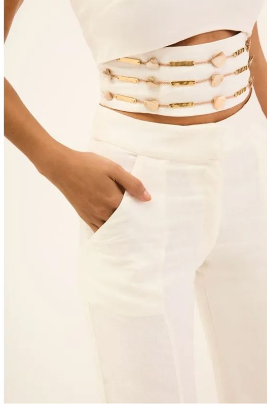 • A Calça Estela Off White é a peça perfeita para compor looks versáteis e cheios de sofisticação.
