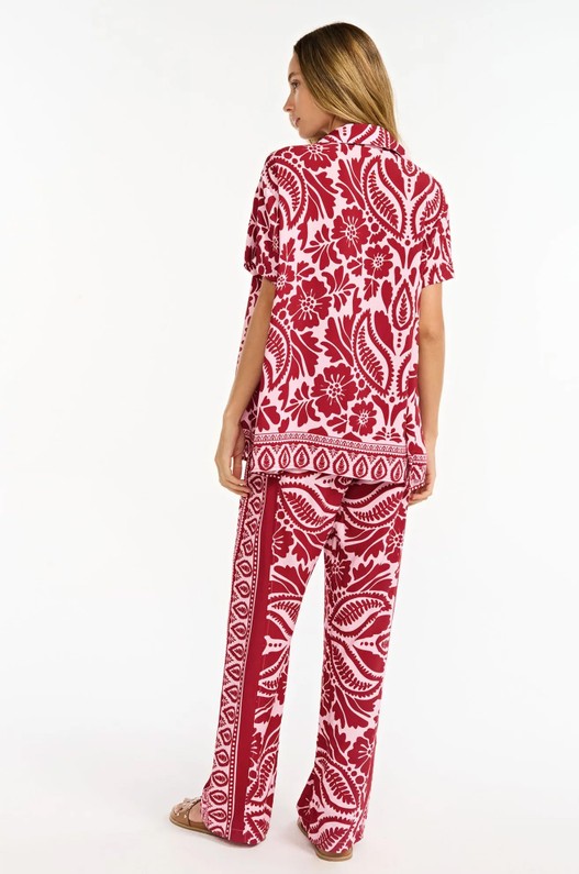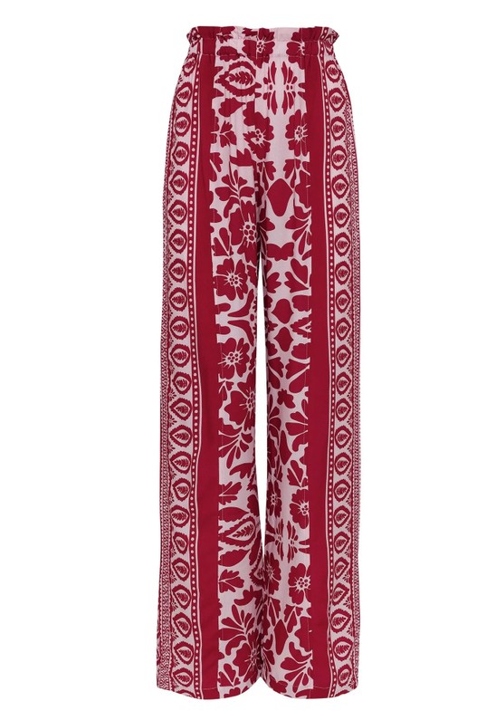 Calça modelagem ampla com cos com elástico detalhe bolso.Tecido estampado digitalmente.