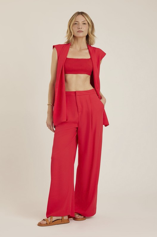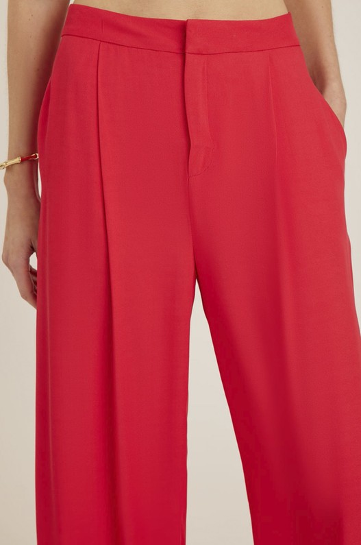 A calça pantalona é feita em viscose em tom vermelho vibrante. Peça Ideal para o dia a dia, combine com o top da mesma cor para compor um conjunto elegante.