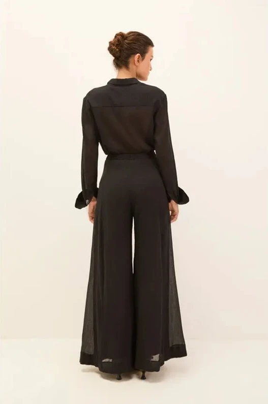 A Calça Pantalona Tay Black é o item perfeito para compor seu look com um toque de sofisticação.