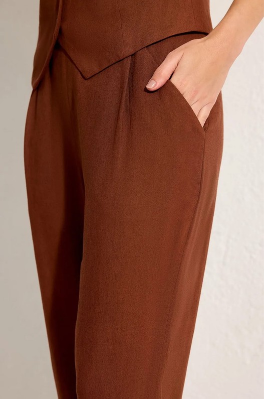 Calça Prega Bolso Marrom Capuccino