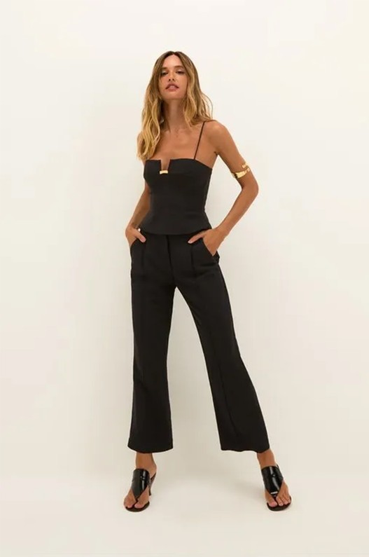 A calça reta preta Prya tem corte alfaiataria, modelagem versátil e te acompanha em todas as temporadas. O cós com braguilha e colchete garante ajuste perfeito, enquanto o recorte central, a bainha larga e a boca levemente ampla trazem modernidade à peça. Combine com tops e blusas da coleção, flats ou saltos, e acessórios ViX Paula Hermanny.