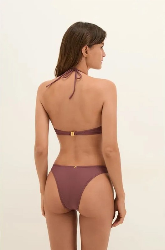Calcinha de biquíni roxa tem a modelagem Básica, com laterais inteiras mais largas sem necessidade de amarração. A cobertura Brasil equilibra conforto e ajuste na medida. Pode ser usada mais alta ou mais baixa.