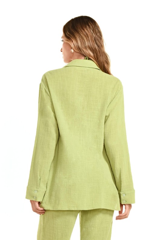 Camisa manga longa, com botões fechamento frente com detalhe banana bordado.