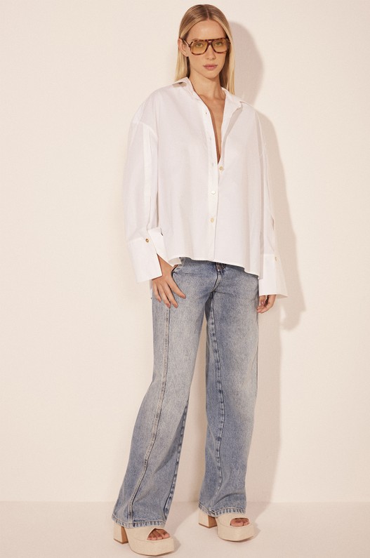 A Camisa Manga Longa Essência Off White, em tricoline conforto, possui fenda lateral e mangas com prega na frente, oferecendo um visual fluido e elegante. O punho largo e a barra reta na frente, com costas fraldada, adicionam sofisticação ao design. A prega macho nas costas proporciona um ajuste refinado, tornando a camisa uma peça ideal para looks casuais e sofisticados., confeccionado em TRICOLINE CONFORT, apresenta lateral fixa e modelagem anatômica com bumbum partido. O detalhe de bordado na frente, imitando o padrão do animal oryx, adiciona sofisticação e um toque moderno à peça.