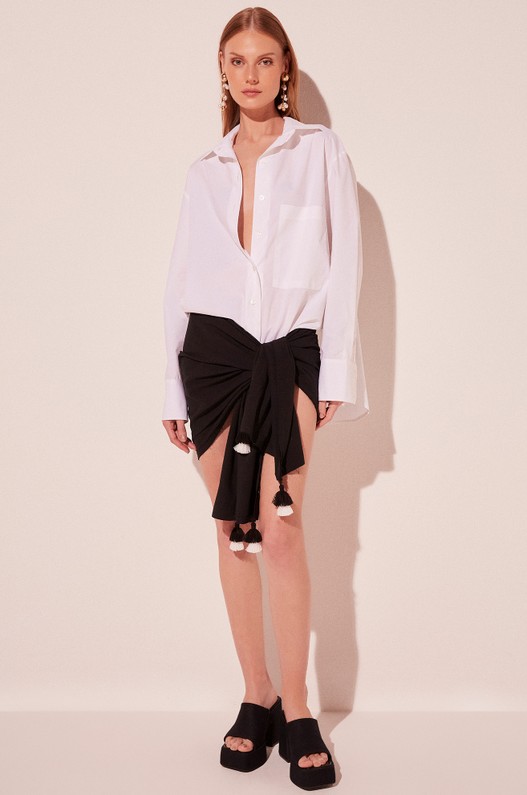 Adicione um toque moderno ao seu verão com a canga de praia com franja do Mix Pacífico Preto. Confeccionada em gaze rústica, esta peça charmosa apresenta franjas em contraste que se movem graciosamente com cada passo. O acabamento a fio e o comprimento mais curto a tornam ideal para amarrar na cintura ou usar sobre o biquíni, oferecendo uma cobertura estilosa e prática para qualquer atividade à beira-mar.