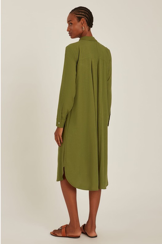 Chemisier em viscose com linho leve, manga longa, barra arredondada e pala nas costas de onde sai uma prega no centro. Possui modelagem ampla e comprimento cropped. O chemisier traz versatilidade para o guarda-roupa, podendo ser usado no dia a dia e também como saída de praia. É a aposta de quem ama unir estilo com sofisticação.