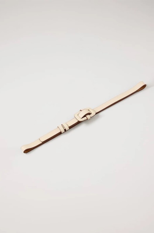 Cinto em couro off-white com fivela em elo forrado no mesmo material