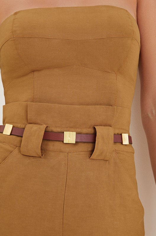 Clássico e versátil, o cinto de couro vinho Jade é um acessório para ter para sempre. Combine com calças, shorts e saias da coleção. - Com fivela dourada - Aplicação de rebites dourados PP: 70 cm/ P: 75 cm/ M: 80 cm/ G: 85 cm