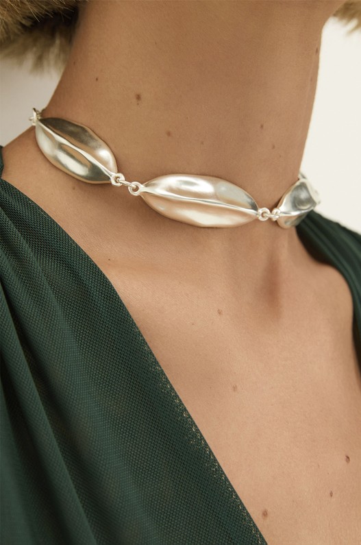 Em shape inspirado em elementos orgânicos, o Colar Caroline apresenta textura levemente amassada no metal prata, trazendo um toque de sofisticação ao visual. Perfeito para usar sozinho ou em composições, é uma peça versátil para diferentes estilos.
