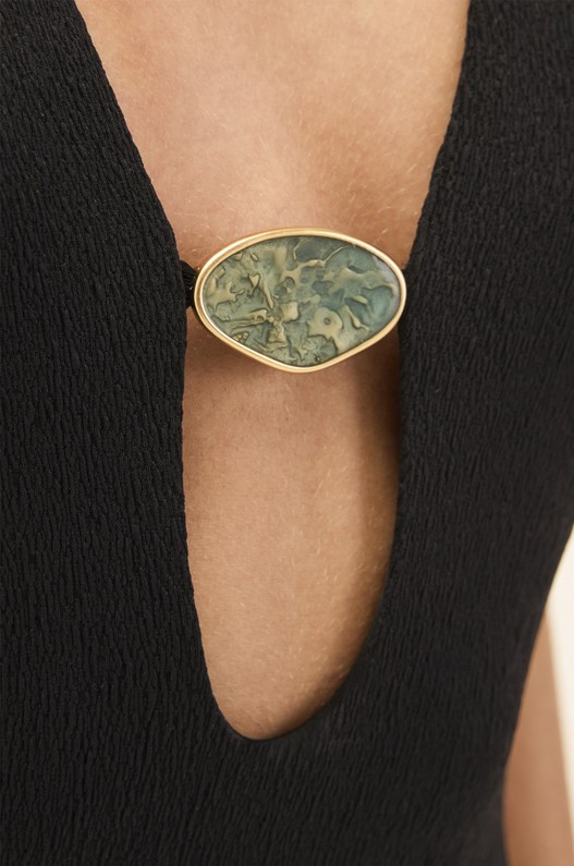 Maiô inteiro frente única com detalhe de metal no sub-busto