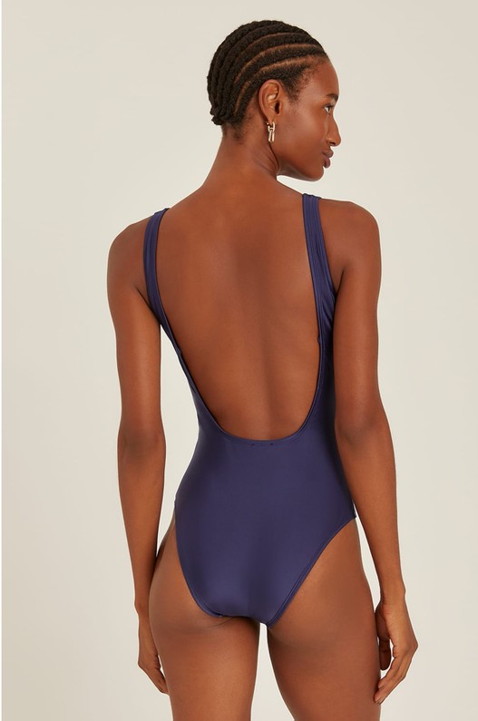 Maiô com modelagem clássica, com estrutura interna e tira removível nas costas que ajudam na sustentação do busto.