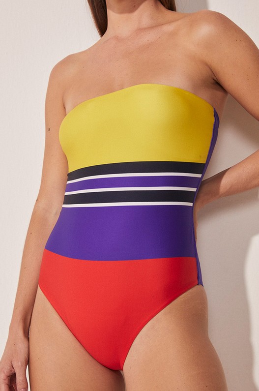 Com bojo removível, a peça não possui alças e tem um caimento confortável, ideal para destacar a silhueta com frescor nos dias al mare ao lado da sua saída de praia ÁGUA DE COCO.