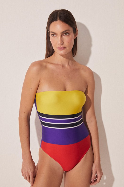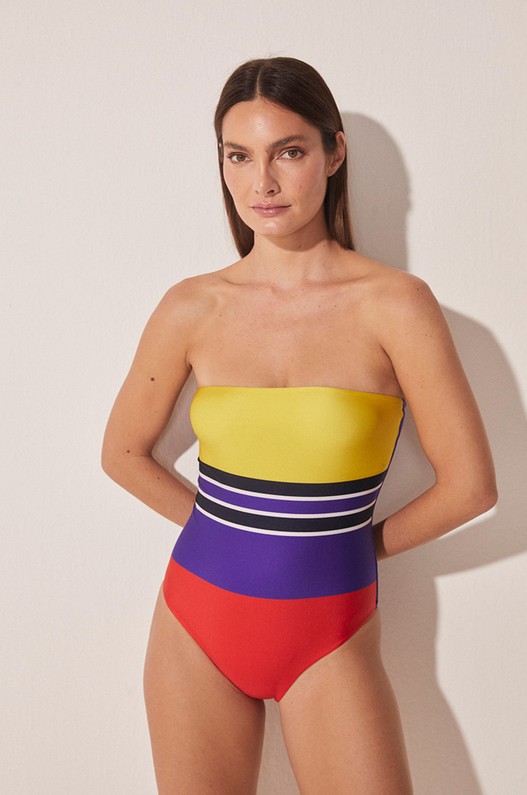 Para completar suas escolhas da temporada, este maiô tem uma modelagem reta e elegante que transita com facilidade da praia à cidade.