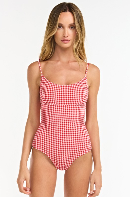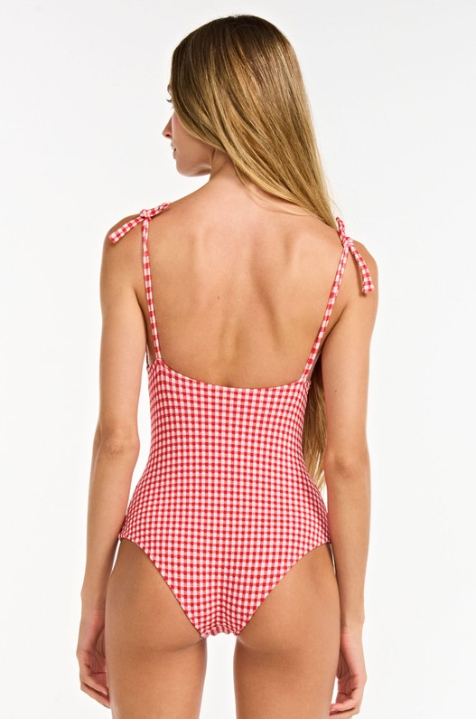 Maiô com alça fina detalhe amarração nó, com decote reto não possui bojo.Tecido texturizado.