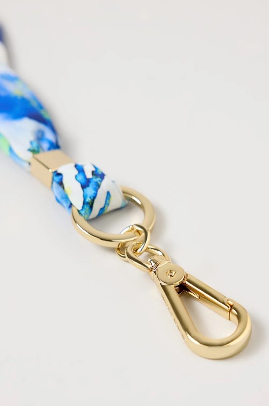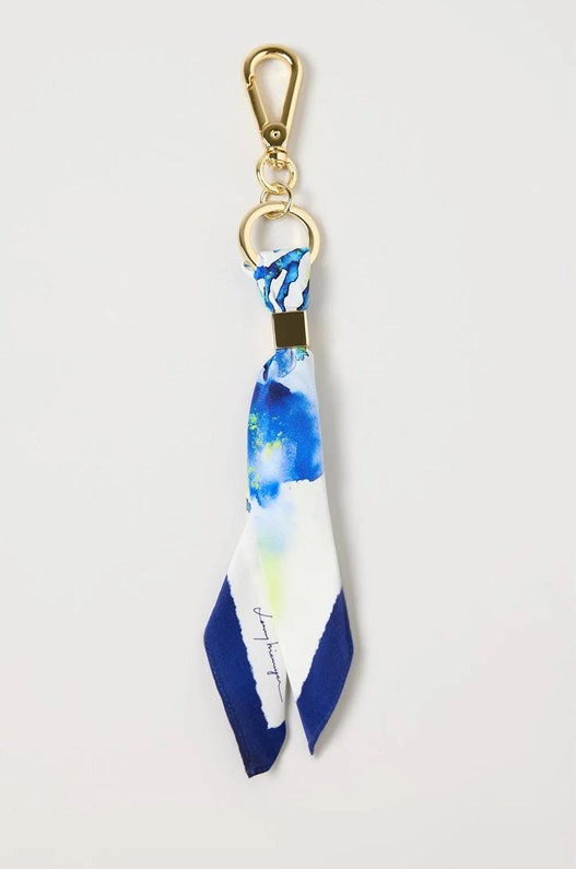 • Chaveiro com mosquetão de metal e mini lenço de seda