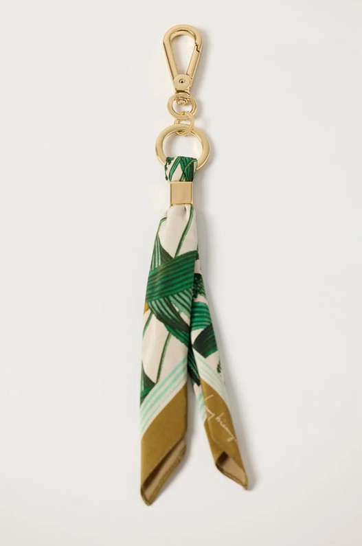 Chaveiro mini lenço, possui mosquetão de metal e mini lenço de seda pendurado. O lenço possui o toque leve e macio, com estampa localizada, esse chaveiro é ótimo para pendurar nas bolsas e valorizar o look do dia ou da noite. Dimensões para e-commerce: 35cm x 35cm