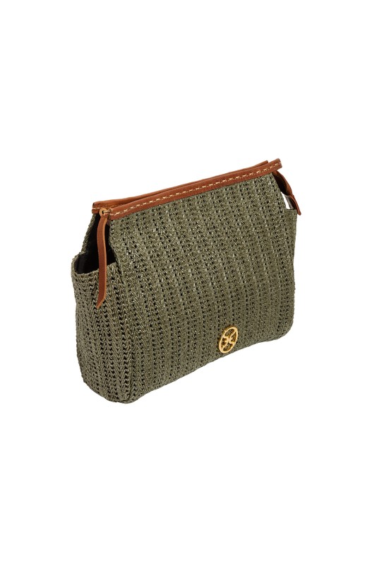 • A necessaire de palha tramada verde é espaçosa, perfeita para levar todos os itens essenciais da praia. - Com zíper - Alça de couro Altura x Largura x Profundidade 20 x 23 x 7 cm