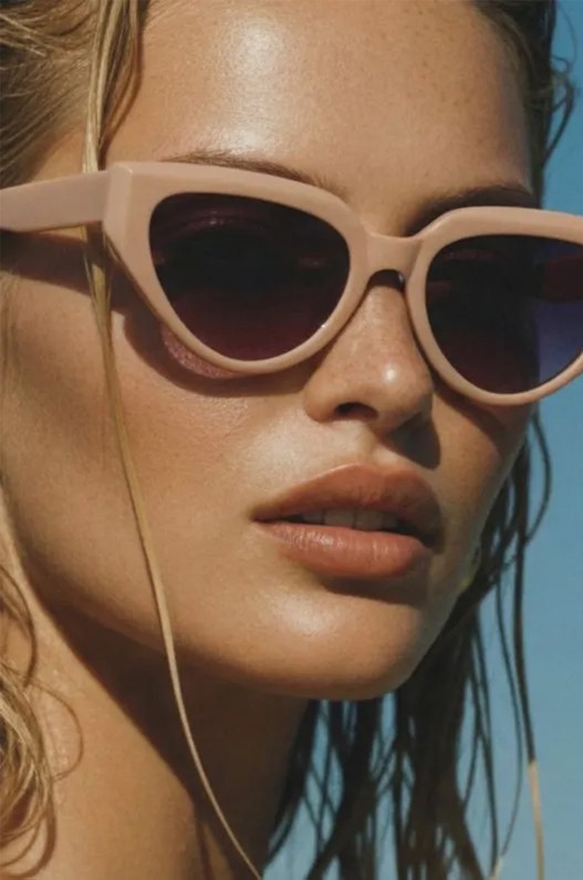 Óculos de sol com armação em acetato na cor cappuccino, design marcante e linhas bem definidas. Possui lentes roxo em degradê, que unem estética e funcionalidade. As lentes de alta performance com proteção total UVA 400 garantem conforto visual e segurança para uso em ambientes externos.