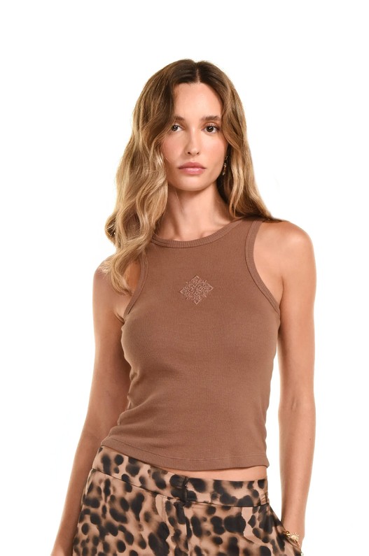 A regata canelada é uma peça versátil e atemporal, com bordado exclusivo, confeccionada em malha canelada de alta qualidade, possui decote careca clássico e modelagem ajustada ao corpo.