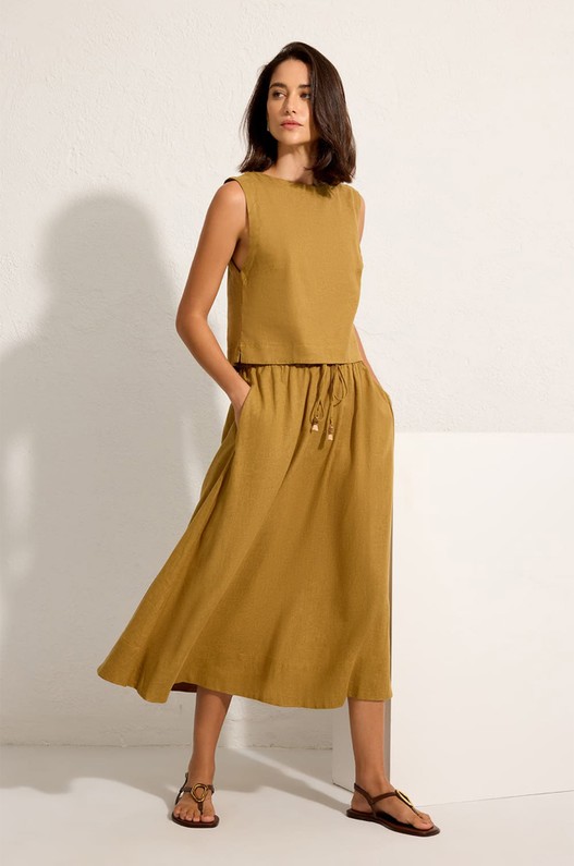 - O movimento fluido e o comprimento alongado proporcionam leveza e praticidade ao vestir.