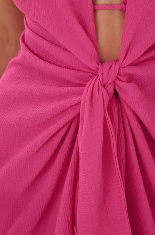 Saida de praia rosa curta com decote V profundo, pontuado por amarração frontal. Combine com o seu biquíni preferido, sandálias flats, bolsa de palha, chapéu e outros acessórios ViX.