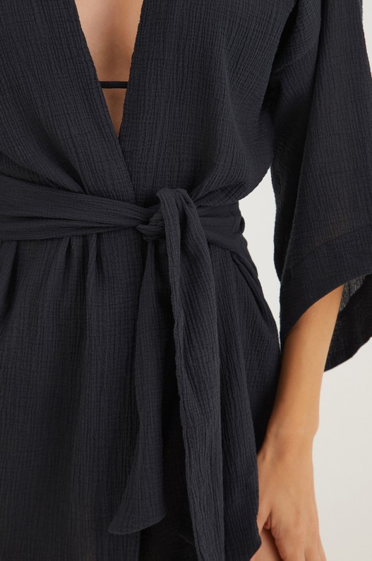 Saída de praia preta curta com manga ampla, decote profundo e amarração frontal. Combine com o seu biquíni preferido, sandálias flats, bolsa de palha, chapéu e outros acessórios ViX. Veja também nas cores Berryburst e Off White.