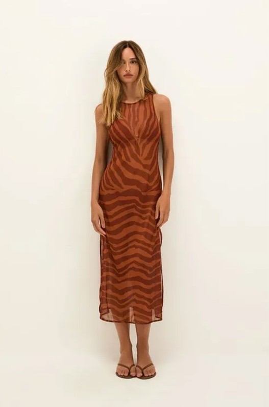 Com shape solto no corpo, a saída de praia longa estampada Twist tem decote redondo, alças médias e fendas laterais que acompanham o movimento com naturalidade. Combine com o seu biquíni preferido, sandálias flats, bolsa de palha, chapéu e outros acessórios ViX Paula Hermanny.