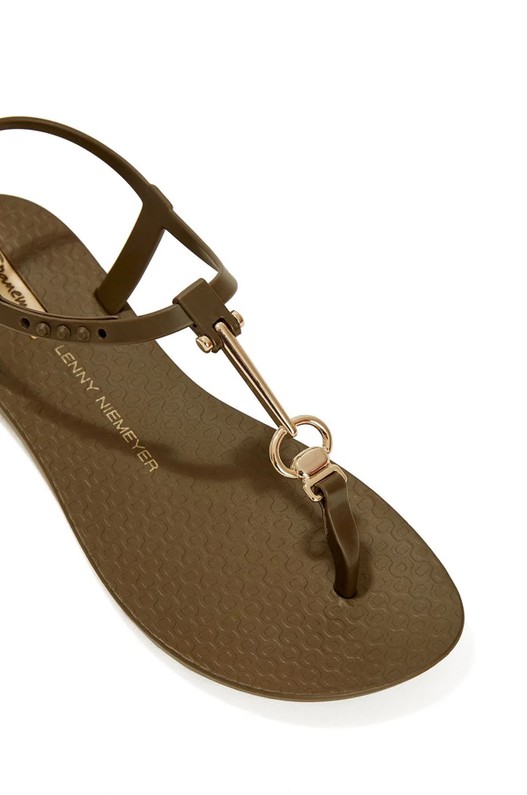 A sandália Ipanema da coleção de Verão 24 possui cores neutras que compõem os looks da marca. O metal em formato de bridão valoriza a sandália Ipanema. Este modelo é essencial para qualquer ocasião, pois é confortável e traz sofisticação à produção