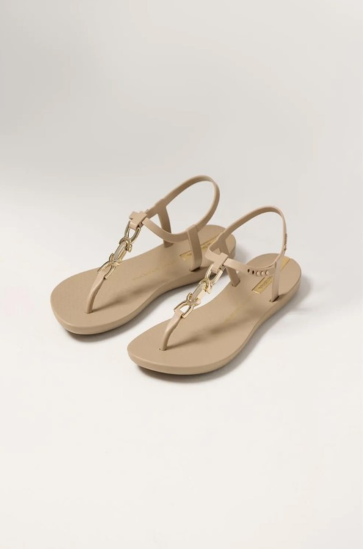 Sandália Ipanema V 26 que compõem com os looks da marca. Possui metal em formato bridão que valoriza a sandália com sofisticação. Este modelo é coringa, confortável e simples, não deixando de ser elegante.