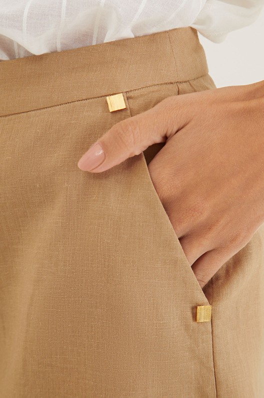 Leve e atemporal, o short de alfaiataria bege Iuna é a uma opção versátil para ocasiões descontraídas. Experimente usá-lo com sandálias, bolsas e outros acessórios ViX. - Com cós, passadores e cintura média - Fechamento frontal oculto - Dois bolsos nas laterais - Dois bolsos posteriores - Detalhes em metal dourado Detalhes feitos à mão no ateliê ViX
