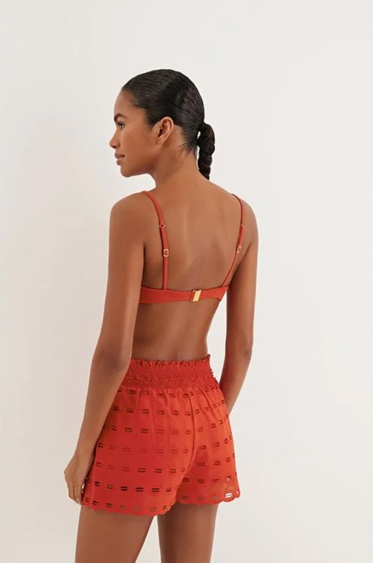 Leve e casual, o short vermelho Babi é feito de laise especial 100% algodão. Uma peça versátil para usar com seu biquini preferido, sandálias flats, bolsa de palha, chapéu e outros acessórios ViX Paula Hermanny. - Modelagem soltinha - Cintura média - Cós largo com lastex - Possui forro