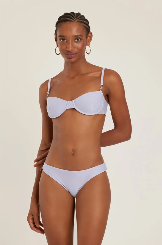 Sutiã de biquíni meia taça, modelo balconette, com acessório dourado nas alças. Lycra texturizada com proteção UV FPU 50+. O sutiã meia taça traz um toque retrô para o look de praia, combinado com o acessório a peça traz sofisticação.
