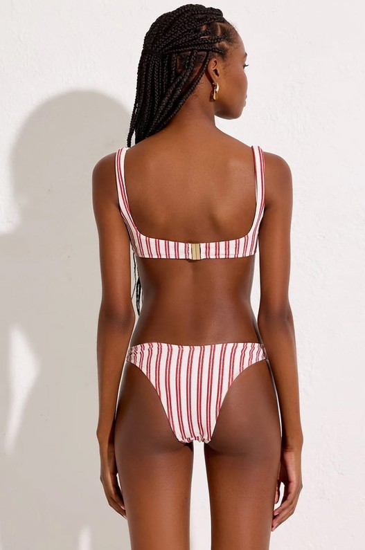 Top camiseta em lycra texturizada, com decote reto, aro sob o busto e cobertura média.