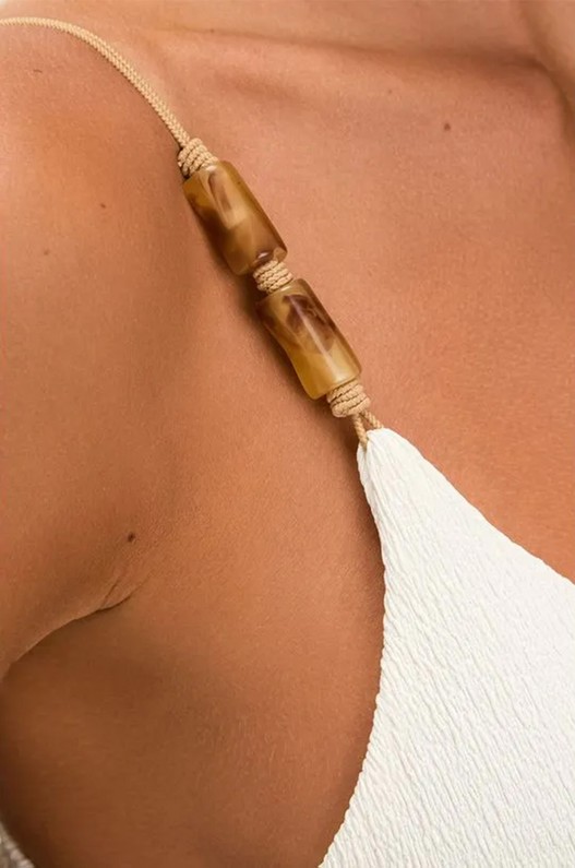 Textura exclusiva Firenze, uma lycra especial creponada opaca que empresta para a moda praia características do algodão e do linho.