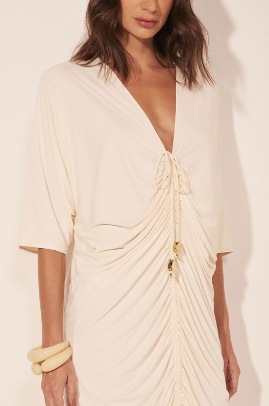 A Túnica Midi Pontal, confeccionada em Lycra Touch UV50, apresenta comprimento midi e decote V, com modelagem justa e mangas amplas. O canal com amarração ajustável na vertical cria um efeito drapeado no centro, proporcionando um visual sofisticado e moderno., confeccionado em LYCRA TOUCH UV50, apresenta lateral fixa e modelagem anatômica com bumbum partido. O detalhe de bordado na frente, imitando o padrão do animal oryx, adiciona sofisticação e um toque moderno à peça.