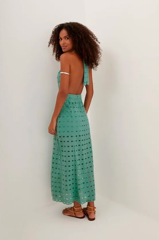 O vestido longo de laise azul Maryse é a peça perfeita para ter por muitos verões. Leve seu look do dia para noite com flats, sandálias altas, bolsas e outros acessórios ViX.