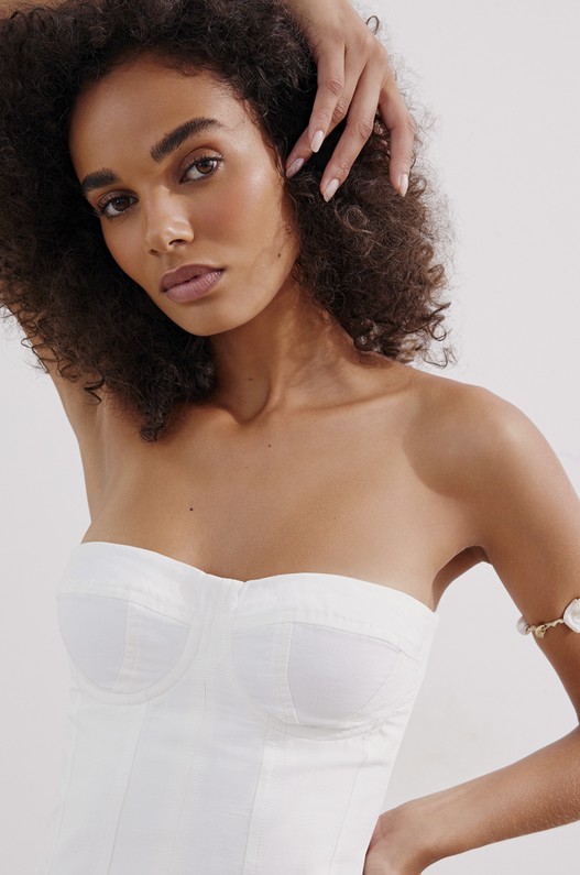 • Vestido midi com bojo estruturado com aro, tomara que caia, bolsos, zíper e lastex nas costas, forro. Get the look: opção superversátil, pode ser usada de maneira casual com flats, ou em produções mais arrumadas com sandálias mais altas.