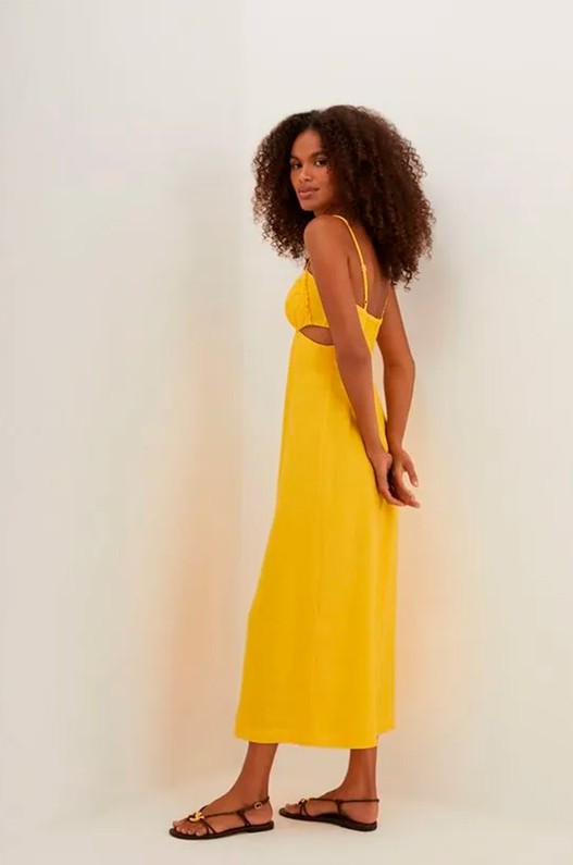 Com uma leveza descomplicada, o vestido midi amarelo Kylie é uma peça para ter por diversas temporadas. Leve seu look do dia para noite com flats, sandálias altas, bolsas e outros acessórios ViX.
