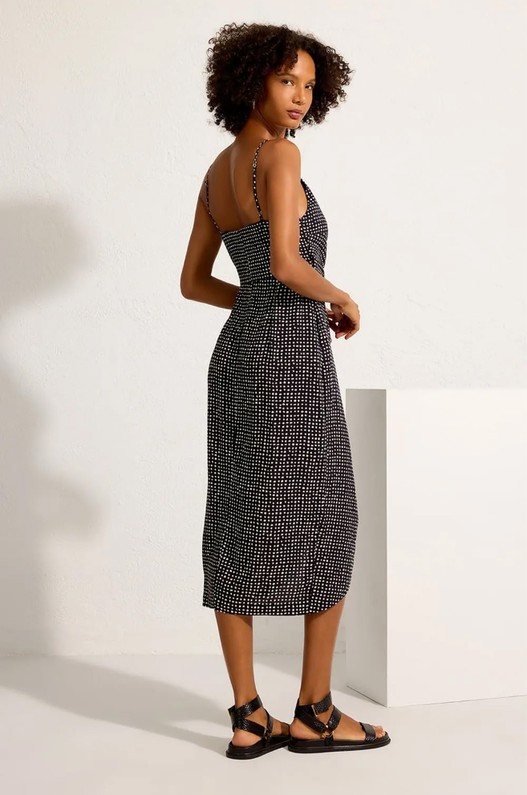 Vestido midi, feito em viscose estampada.